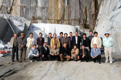 | 採石のやり方は色々ありますが、見学した時はダイヤソーを使い採石していました。 近くまで行って見たり撮影したり、採掘の話を聞いたりと熱心な会員。 |