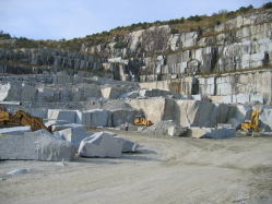 | 東京ドーム6個分の広さがある「滝根みかげ」の採掘場を見学 巨大な岩盤が広がり、大きな原石が多くありました。 |