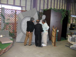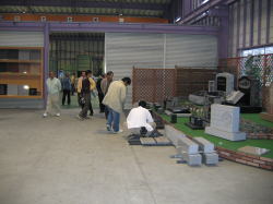 | 「フクイシ」工場に展示してある石製品を見学中。 | |