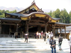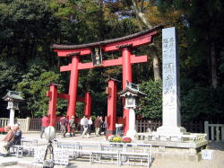 | 高さ30mの大鳥居を抜け、弥彦神社を見学。 | |